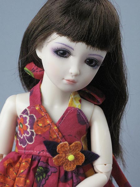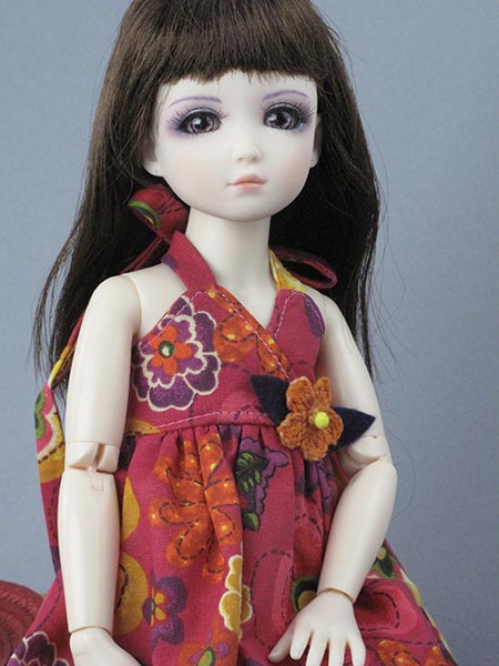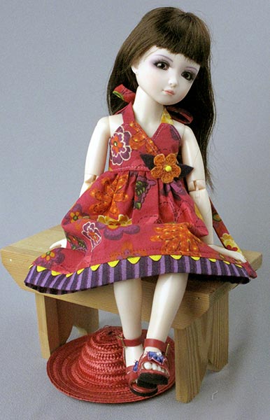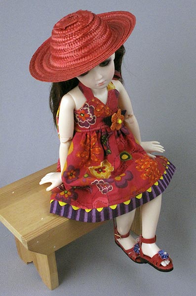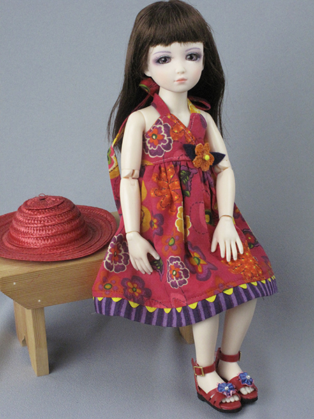 This is an easy to make halter style sundress that was originally designed for Leeann. The sundress has a solid color hem band and is trimmed with rickrack.