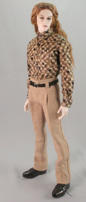 Although, his outfit is made up in more casual fabrics this would work for a dressier look. The classic shirt is made in lightweight cotton. It has a collar and stand, back yoke and cuffed sleeves.