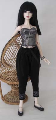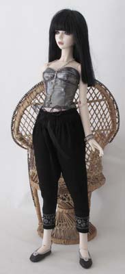 Sylvia, my Iplehouse SD is wearing a metallic bustier, with bra style top. The bustier is fastened in the back with snaps.