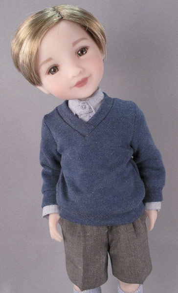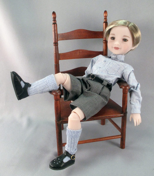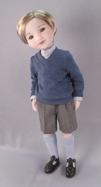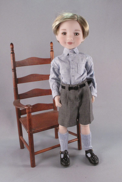George is heading back to school in his pleated shorts and long sleeve shirt. The shirt is made of lightweight shirt weight cotton and the shorts are a wool suit blend.