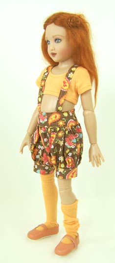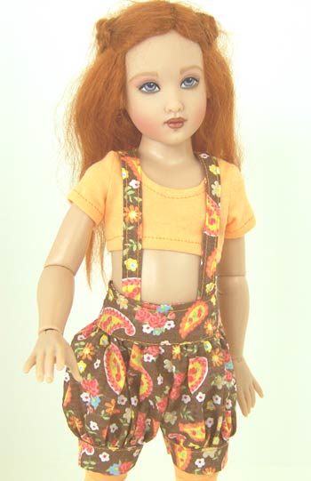 Lark’s hat is made from craft felt and is trimmed with a matching ribbon bow.