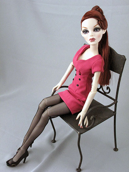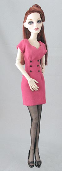 Evangeline is all set to go out for drinks after work. She is wearing a fitted dress with sweet heart neck. Optional buttons make this look a little sporty but trim with a rosette at the waist and the look changes to romantic.